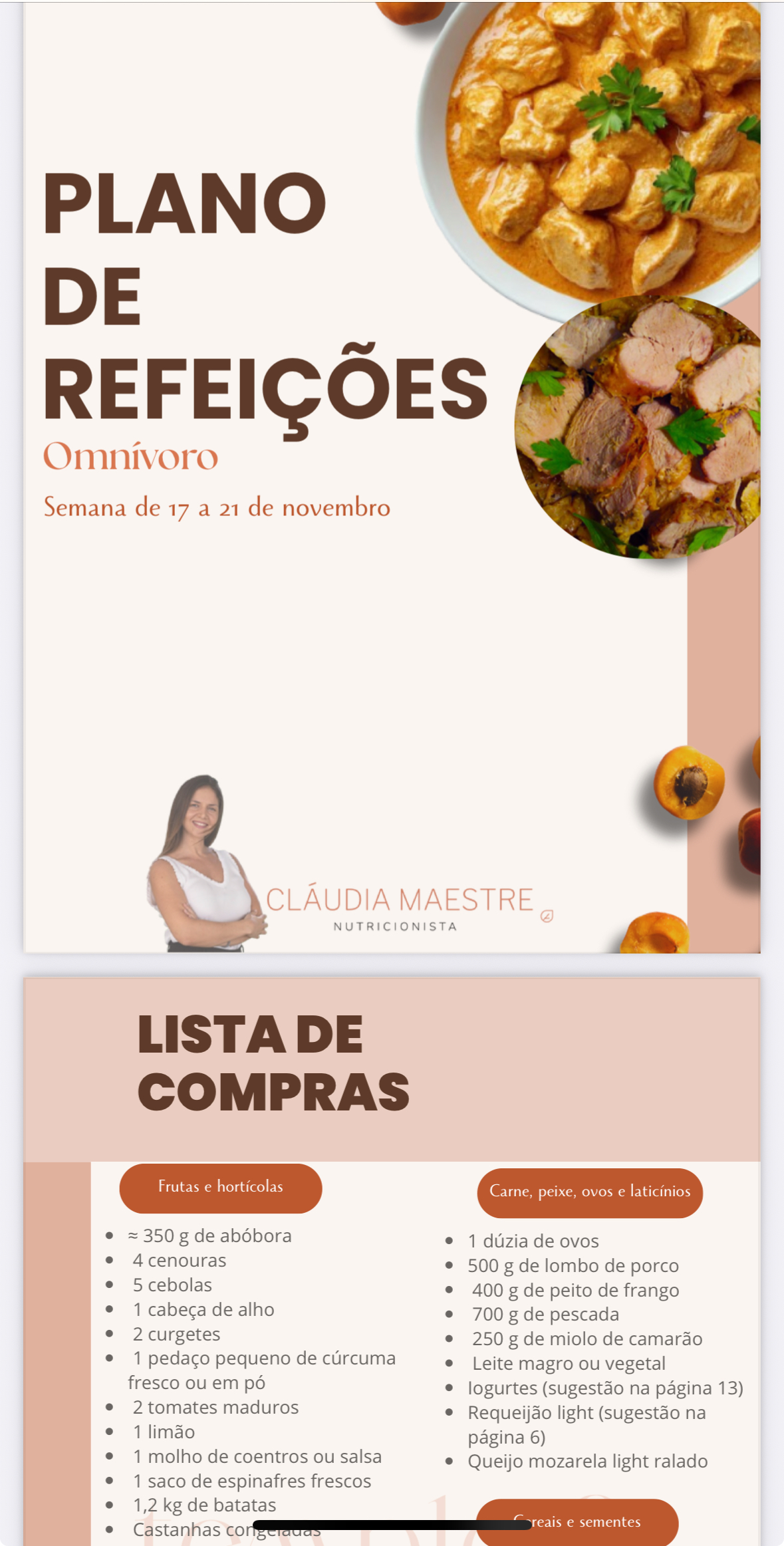 Ementas novas todas as semanas - 1 omnívora e vegetariana