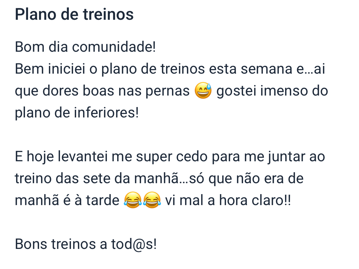 As aulas de treino ficam disponíveis na comunidade por tempo limitado para que possam visualizá-las ao teu ritmo