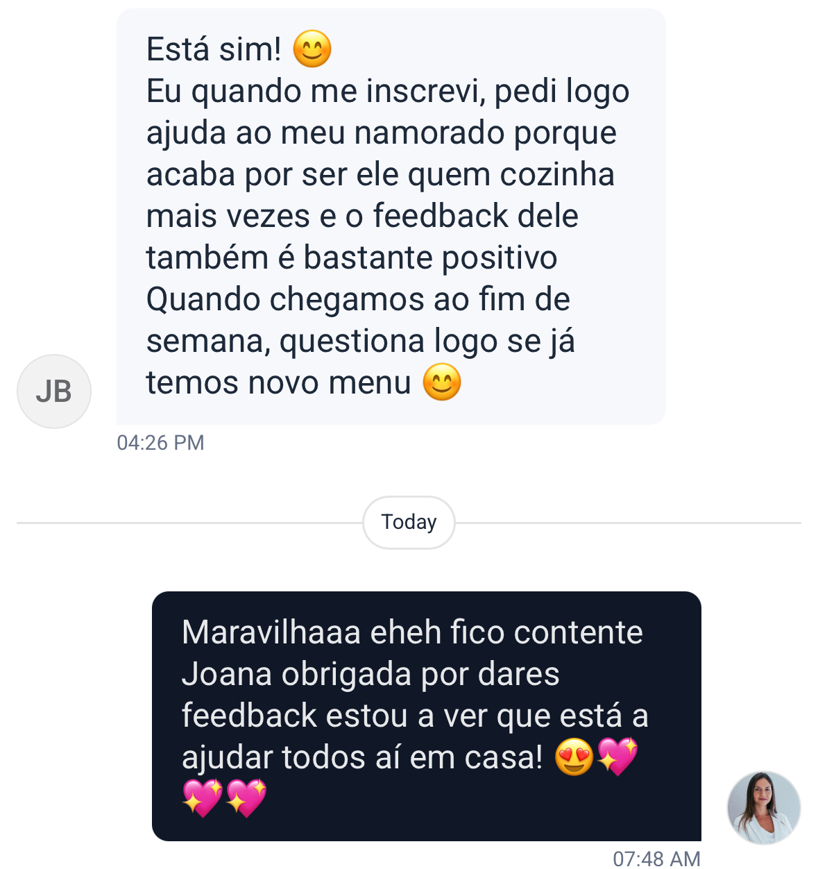 Não, é um programa de grupo para te desafiar a seguir as refeições propostas pelas nossas nutricionistas. Porém, sendo que podes enviar mensagens sempre que quiseres, poderemos ajudar-te com uma ou outra troca 🙂